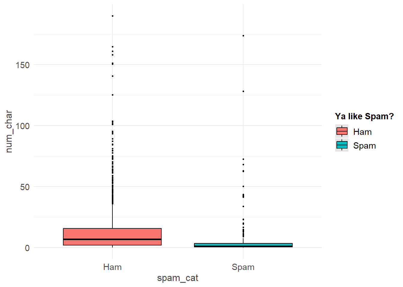 Consider a continuous variable for the number of characters in an email num_char, and a 0/1 binary variable spam.