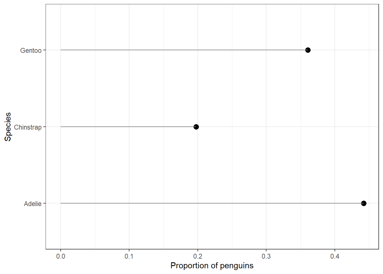 geom_point(size = 3) + xlab("Proportion of penguins") +