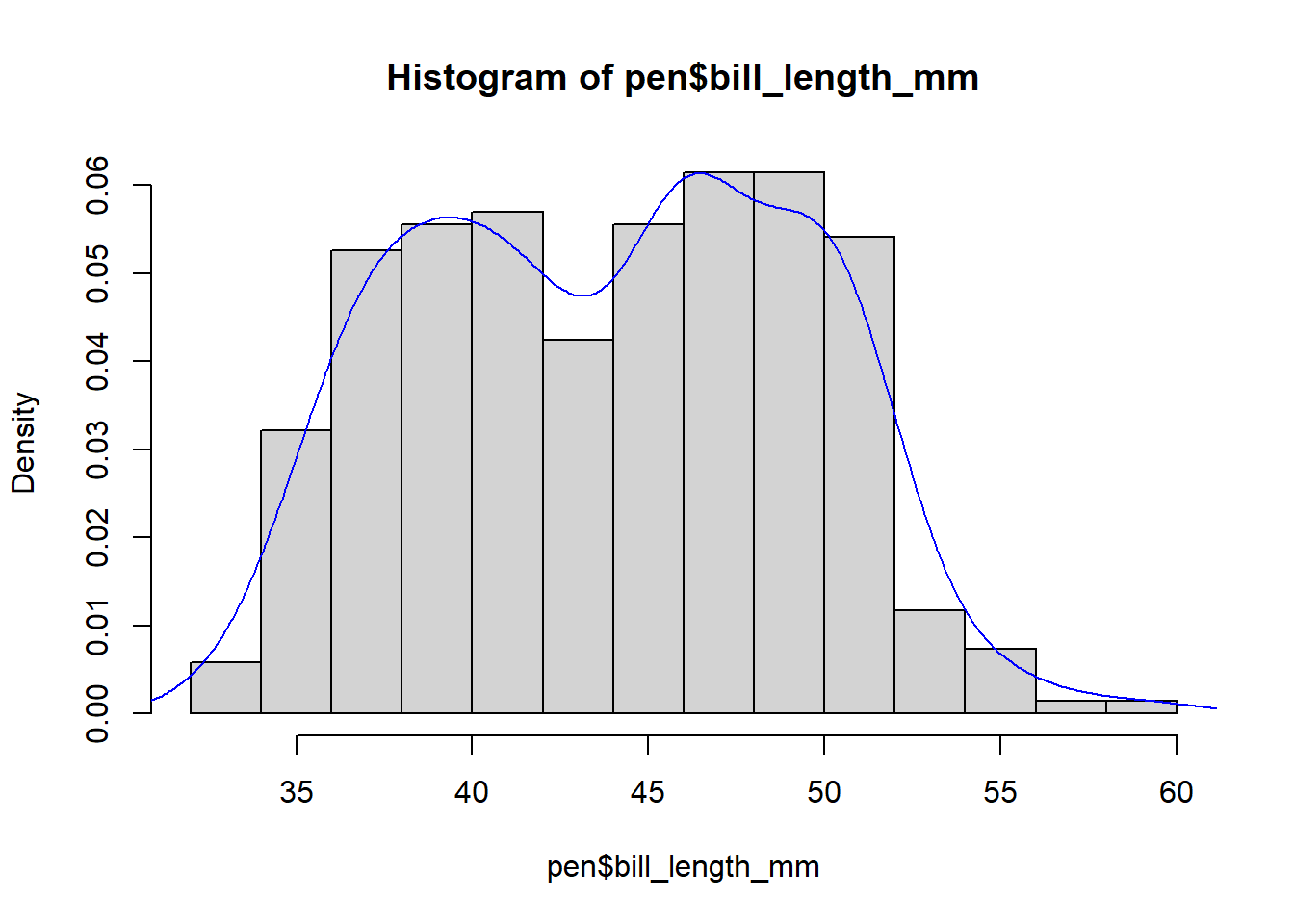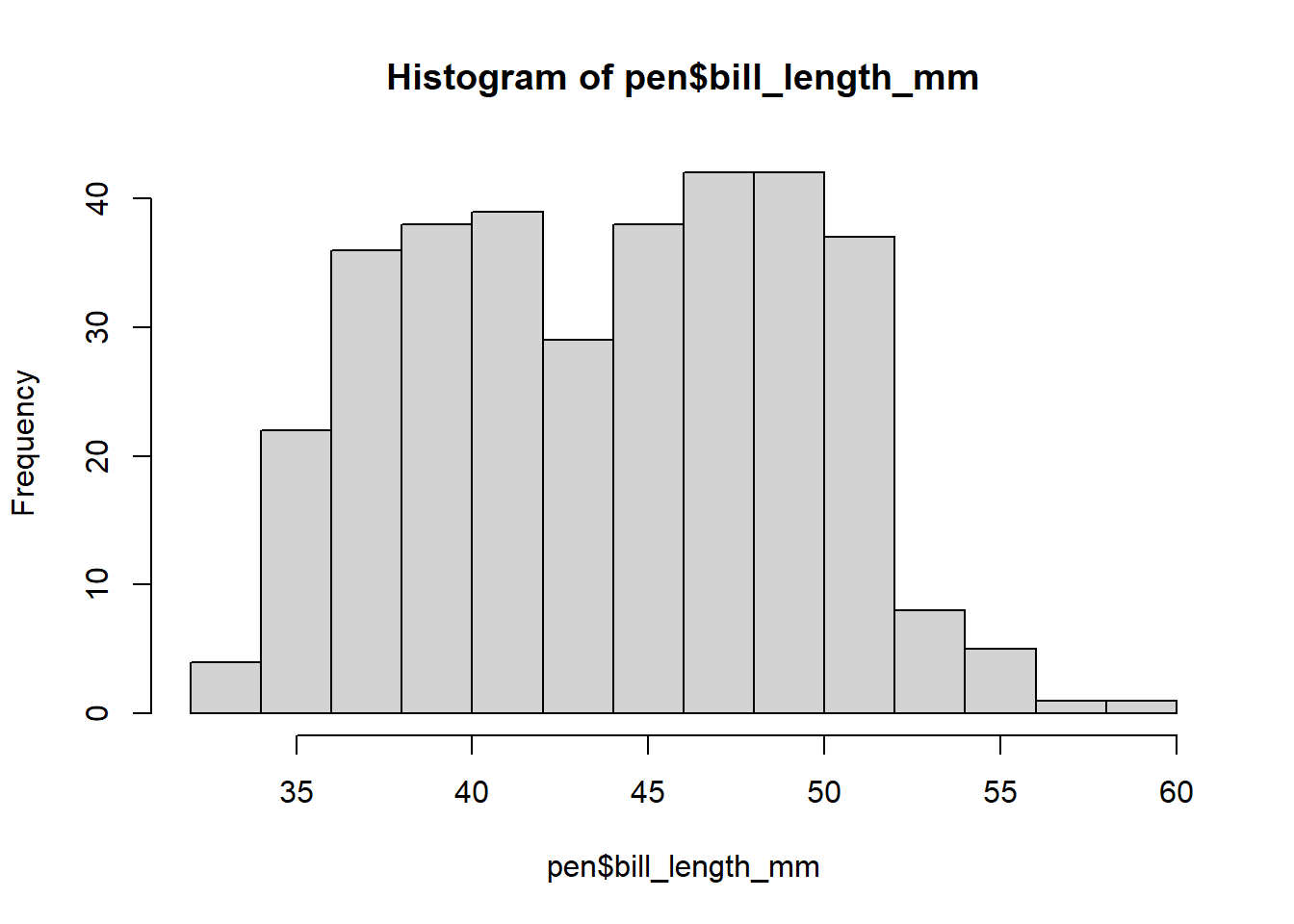 hist(pen$bill_length_mm)