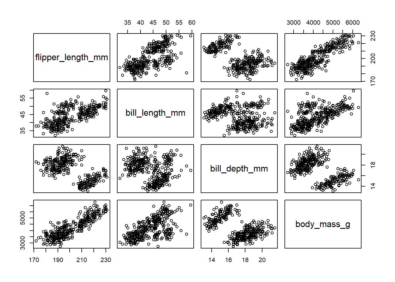 c.vars <- pen[,c('flipper_length_mm', 'bill_length_mm', 'bill_depth_mm',